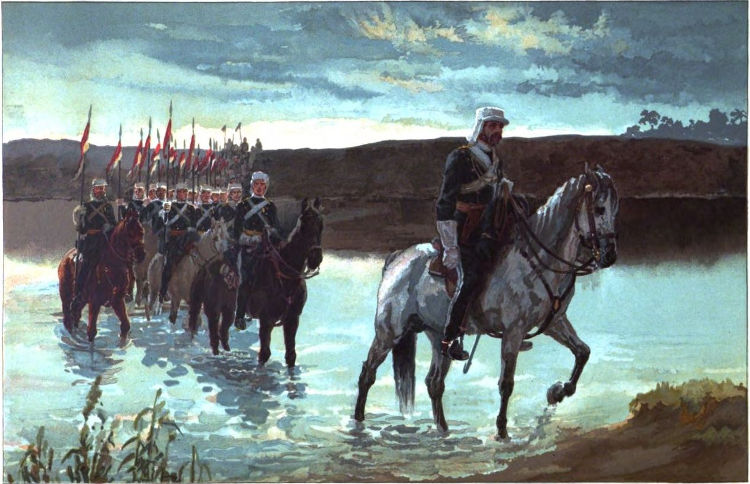 How then have these minor distinctions which formerly separated cavalry from infantry so utterly disappeared? Through[4] what channel did the two branches of the service contrive to meet? The answer is, through the dragoons. Dragoons were originally mounted infantry pure and simple. Those of the Army of 1645 were organised in ten companies, each 100 men strong. They were armed like infantry and drilled like infantry; they followed an ensign and not a cornet; they obeyed, not a trumpet, but a drum. True, they were mounted, but on inferior horses, and for the object of swifter mobility only; for they always fought on foot, dismounting nine men out of ten for action, and linking the horses by the rude process of throwing each animal’s bridle over the head of the horse standing next to it in the ranks. Such were the two branches of the mounted service in the first British Army.
