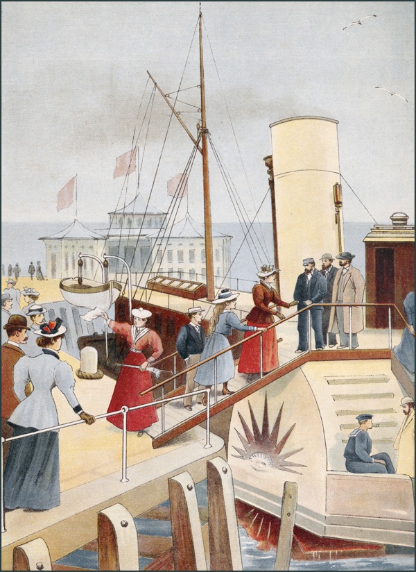Le plus intéressant fut la visite d’un bâtiment faisant escale dans le port où se trouvaient Jacques et Hélène. Leur tante connaissait le capitaine. Il leur fit voir le navire en détail: la cuisine, la salle à manger du bord, le salon avec ses sophas et ses glaces; puis les cabines aux lits superposés.
