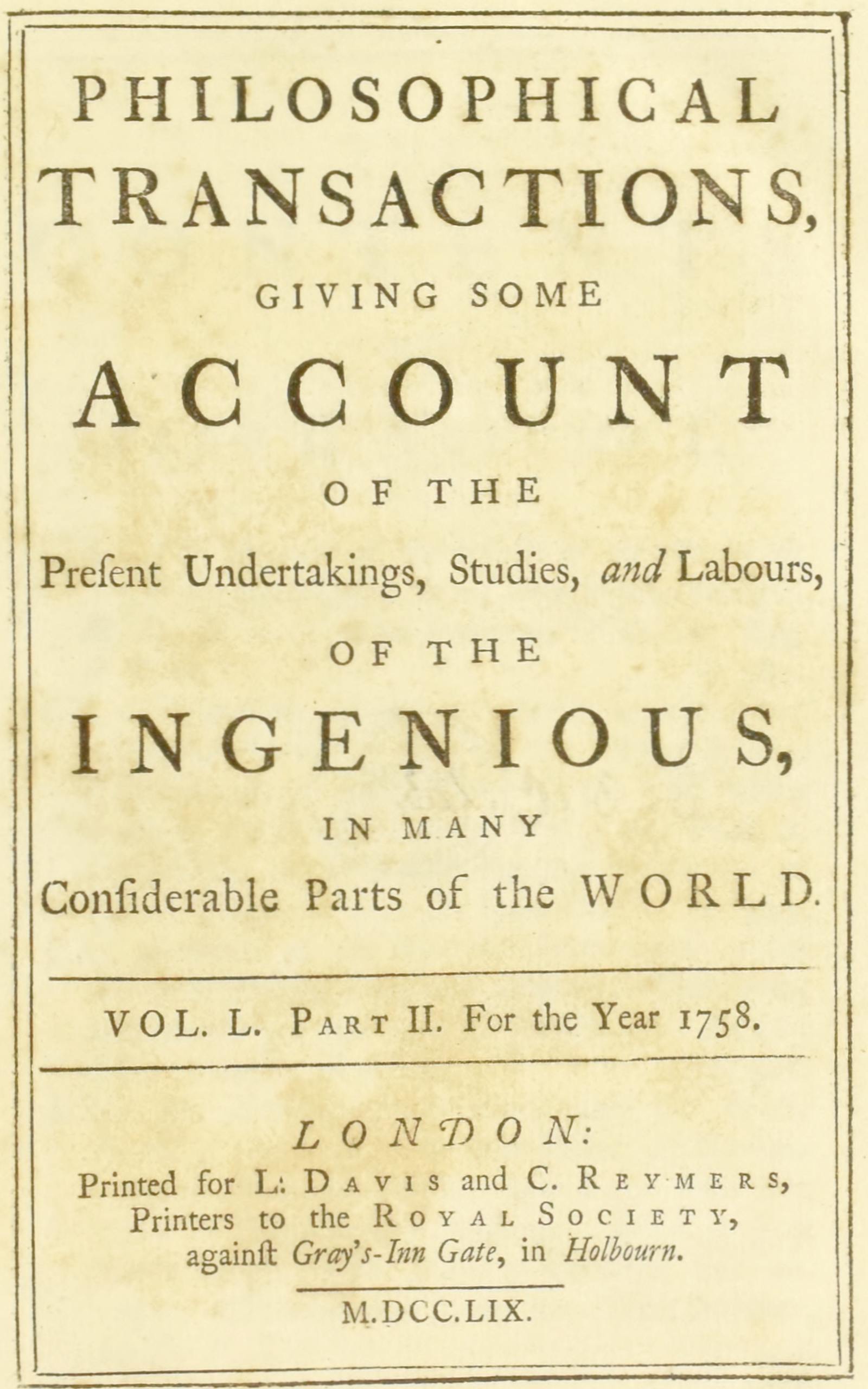 VOL. L. Part II. For the Year 1758.