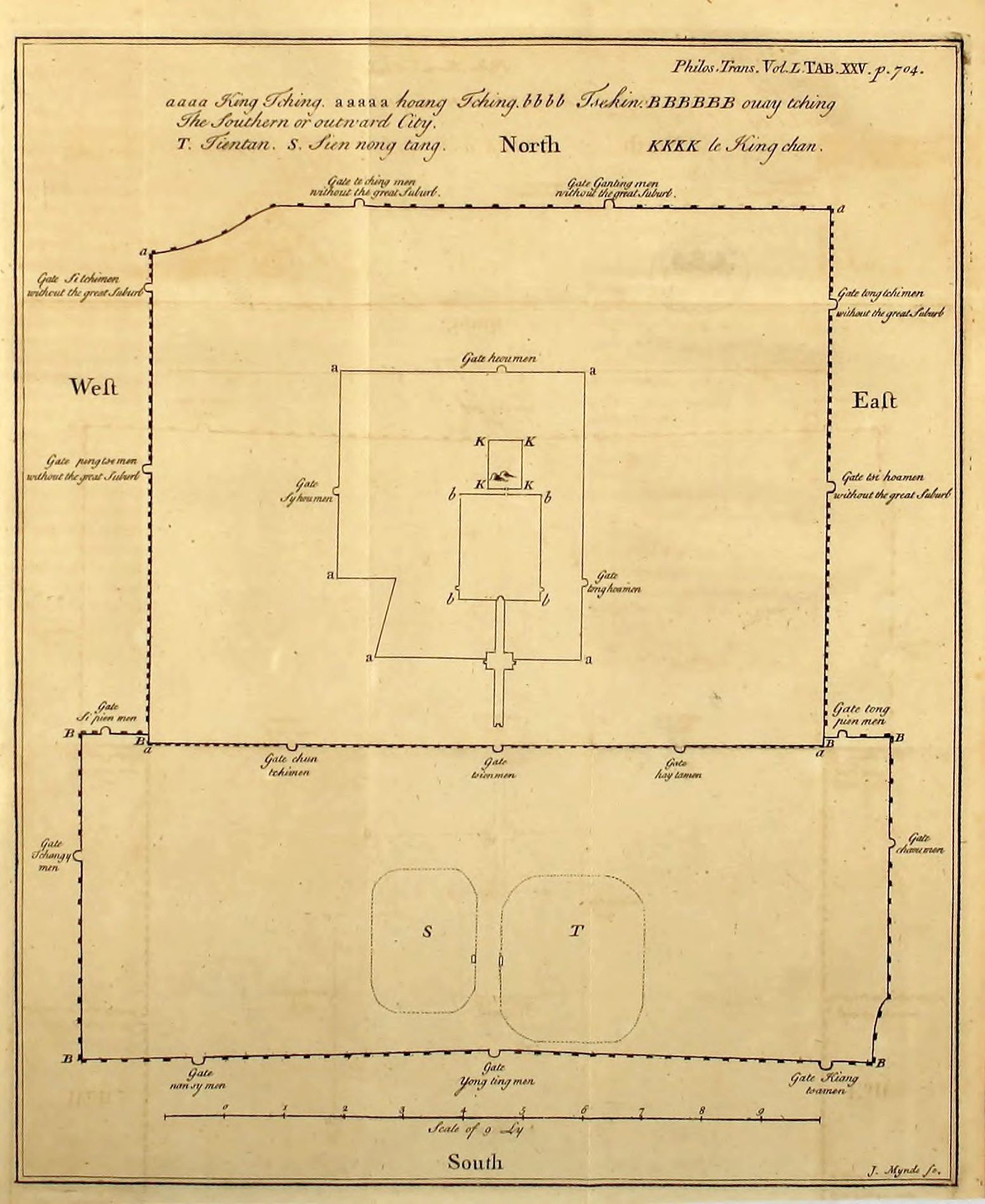 | XCVI. | A Description of the Plan of Peking, the Capital of China; sent to the Royal Society by Father Gaubil, è Societate Jesu. Translated from the French. | p. 704. |