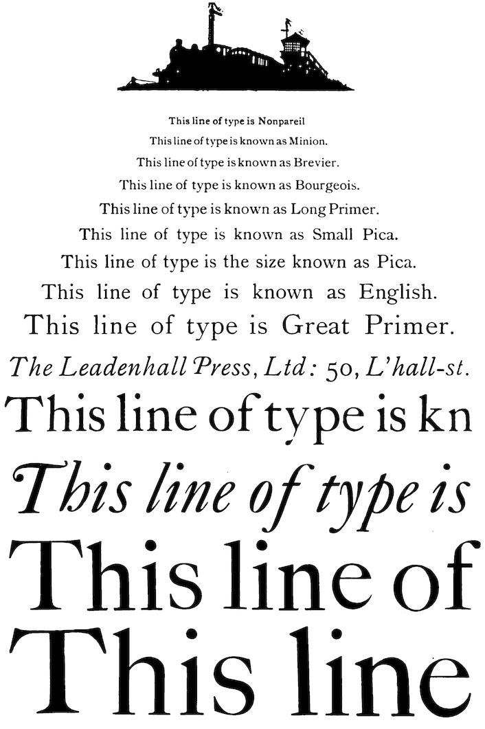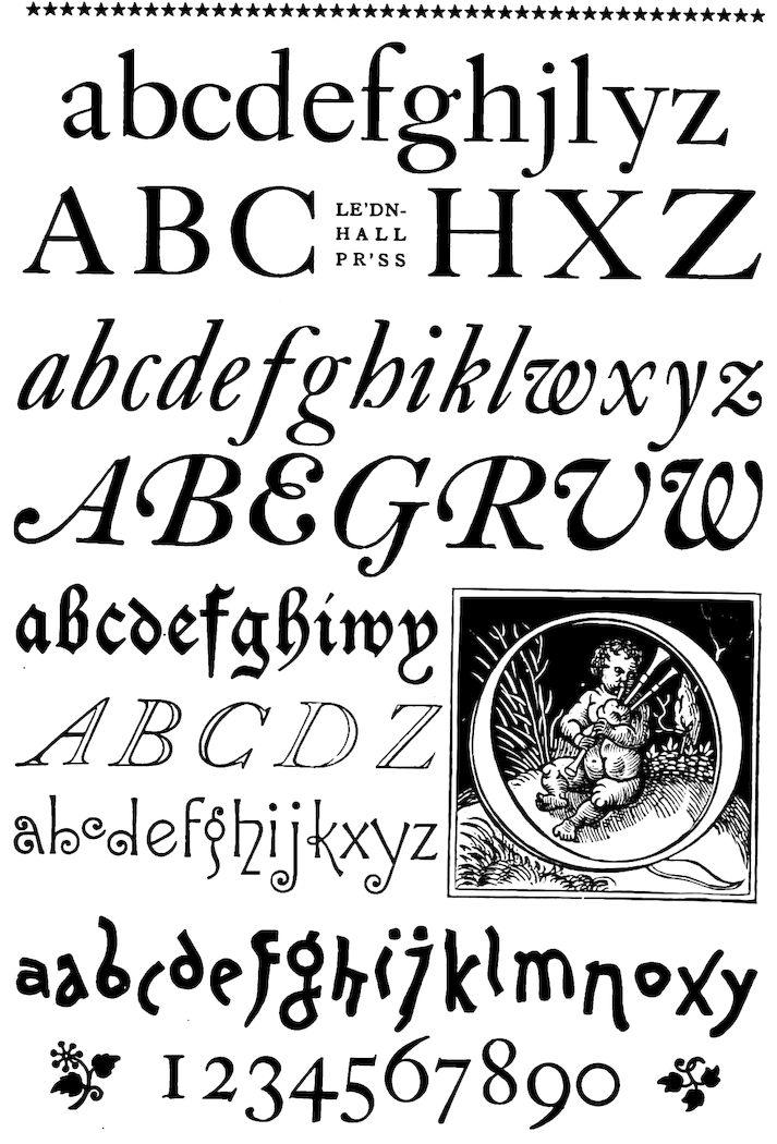 “It is a noticeable feature of this collection of alphabets and ornaments that it has been selected entirely and solely from the material in everyday use at the Leadenhall Press.”—The Art Printer.