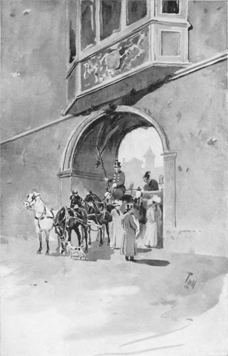 Az istállóhoz vezető ajtó nyilásán állanak két sorban, úgy mint a valódi czirkuszokban, a Niffor czímerébe öltözött lovászok.