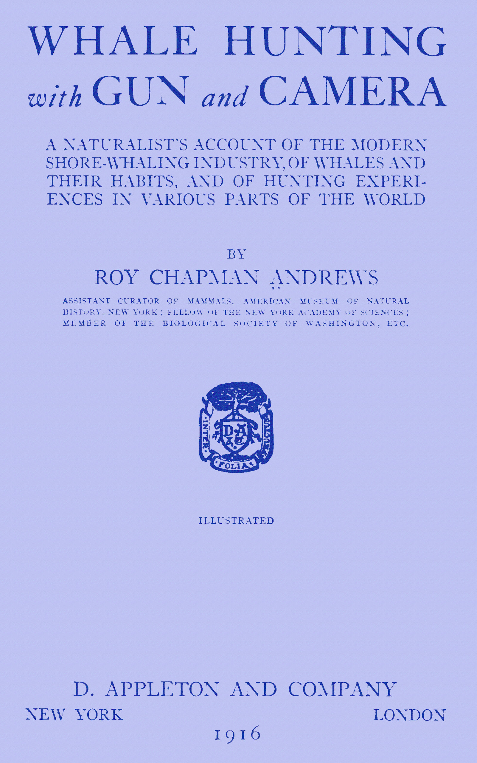 In this book I have endeavored to tell of modern shore whaling as I have seen it during the past eight years while collecting and studying cetaceans for the American Museum of Natural History. This work carried me twice around the world, as well as northward on two expeditions to Alaska, and southward to the tropic waters of Borneo and the Dutch East Indies.