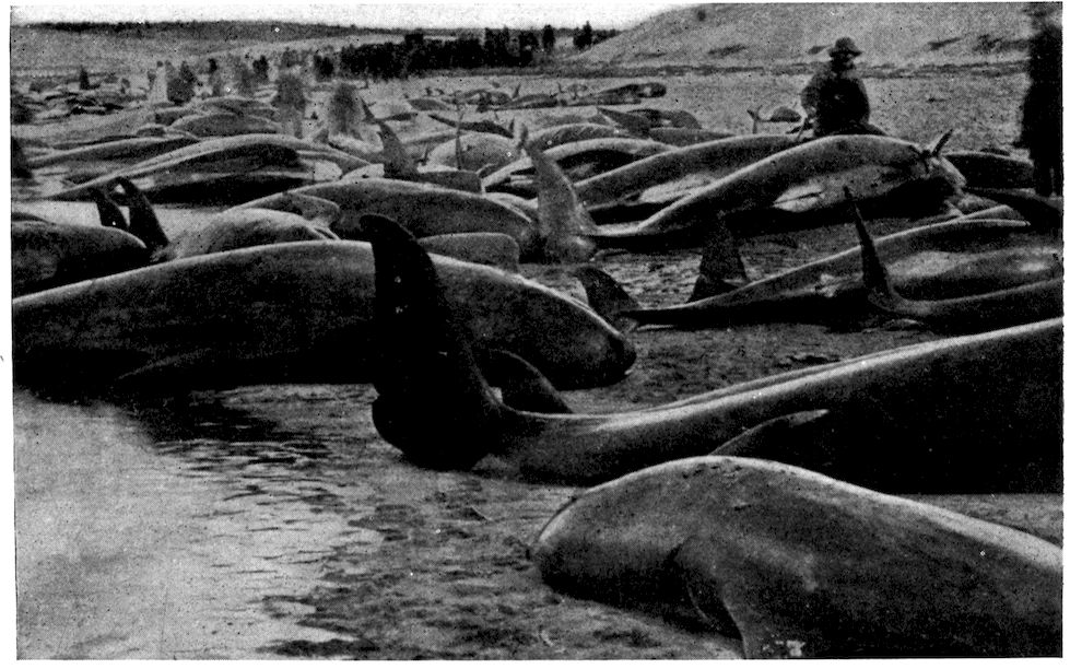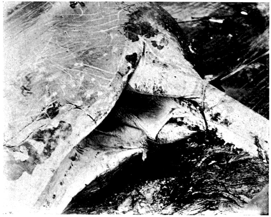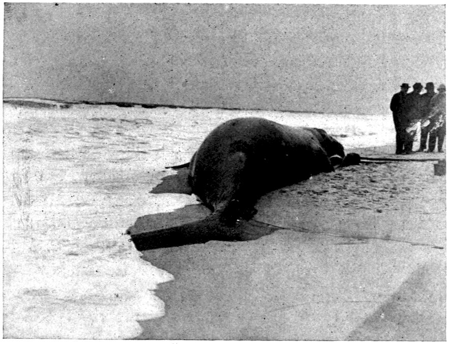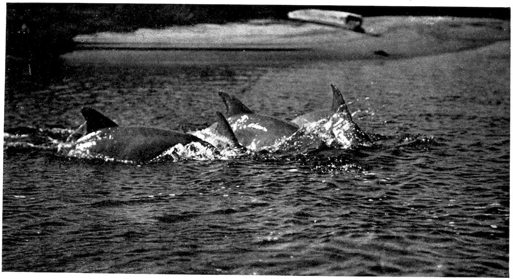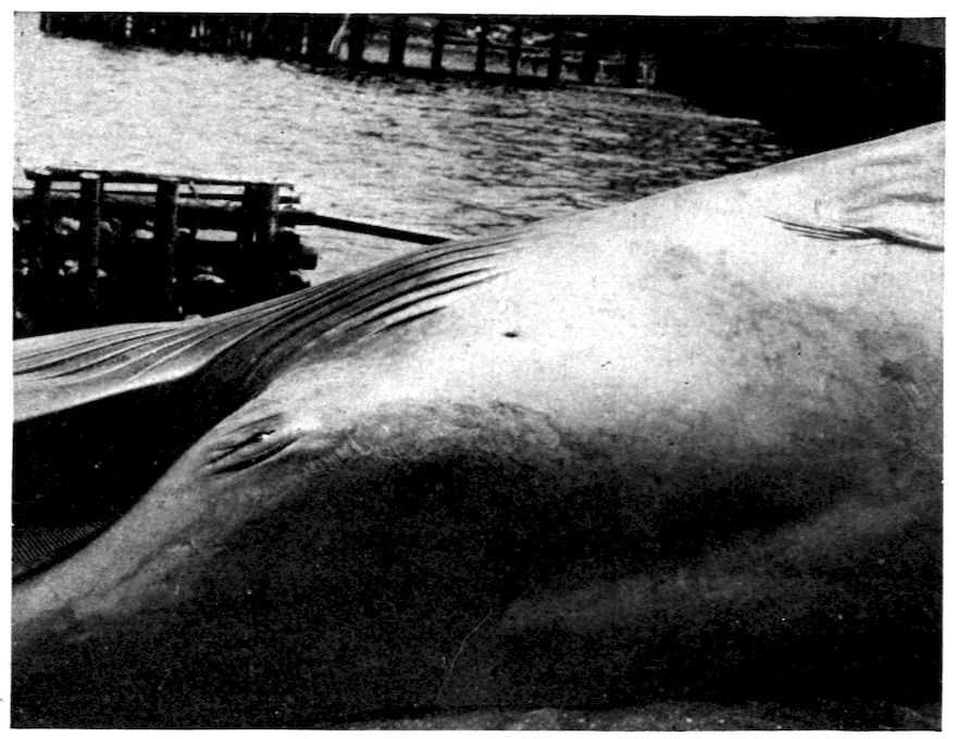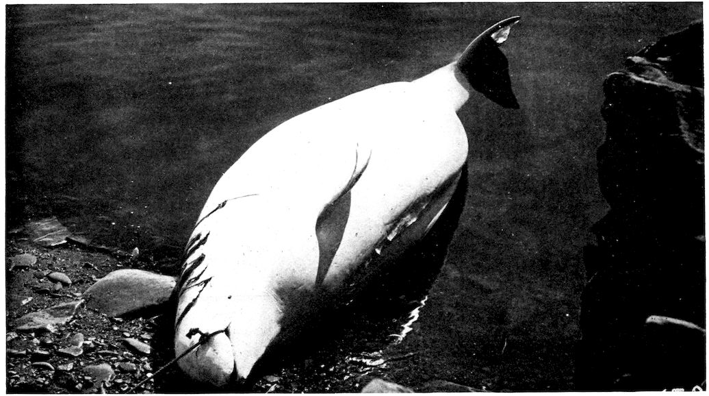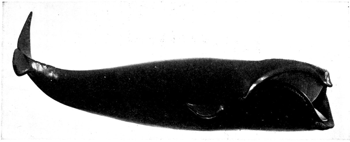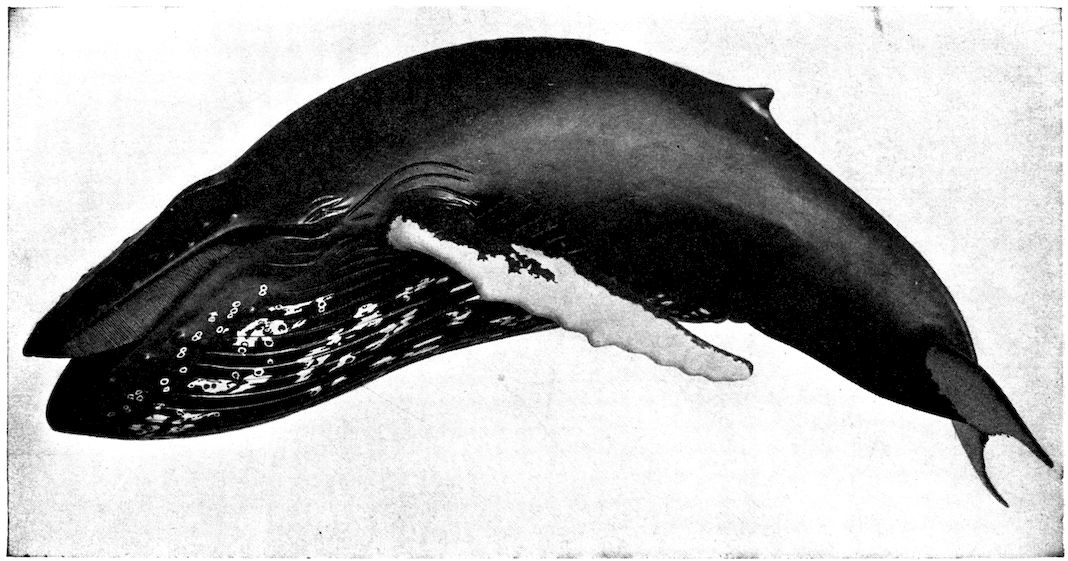 Accompanying this change of bodily shape was the elimination of all unnecessary structures which offered resistance, and the whale’s smooth, soft, hairless skin was one of the results. But the hair of a land mammal acts as a non-conductor, preventing the heat of the blood from being absorbed by the air, and as the whale’s body became naked it was necessary to blanket it with some other protective covering; thus the layer of fat or blubber developed between the skin and the flesh. Fish and amphibians do not need a warm 319covering because their blood is cold and changes with the temperature of the medium in which they live.