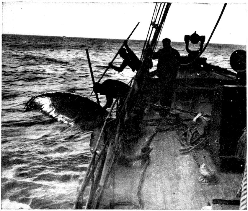 Making ready for the hunt—Three humpbacks sighted—The first kill—Inflating the whale—Cutting in a whale by machinery—Disposition of the parts 22
