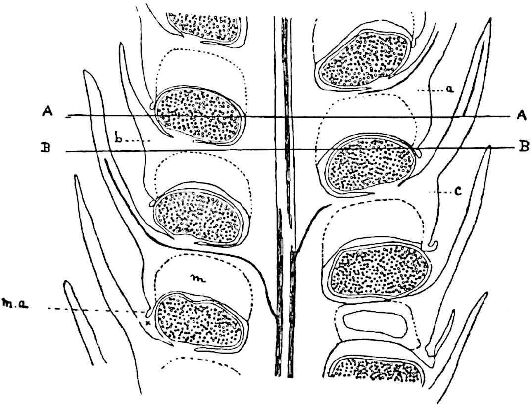| Diagrammatic section illustrating the branch-theory of the Ulodendroid scar [Council of the Manchester Literary and Philosophical Society.] |