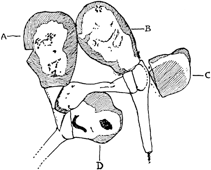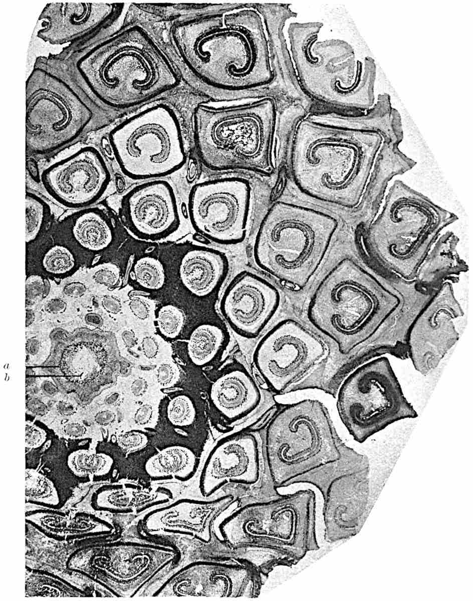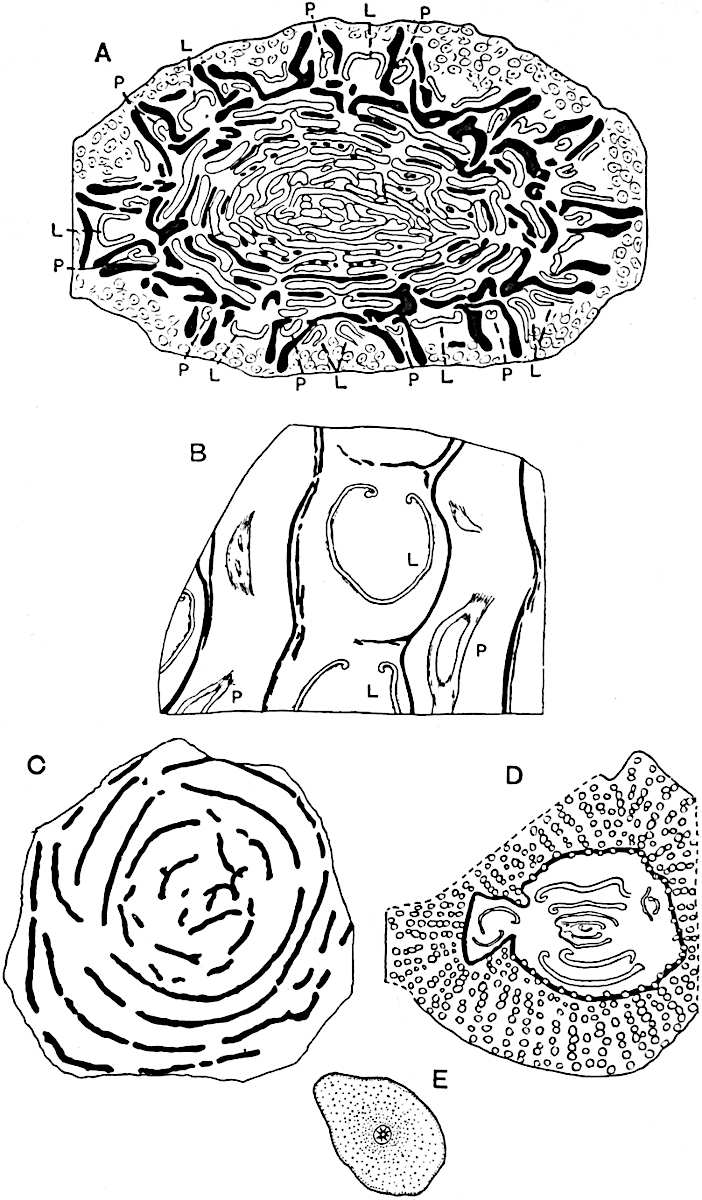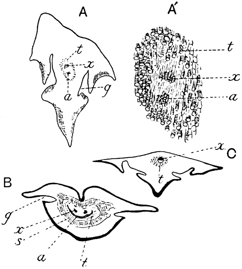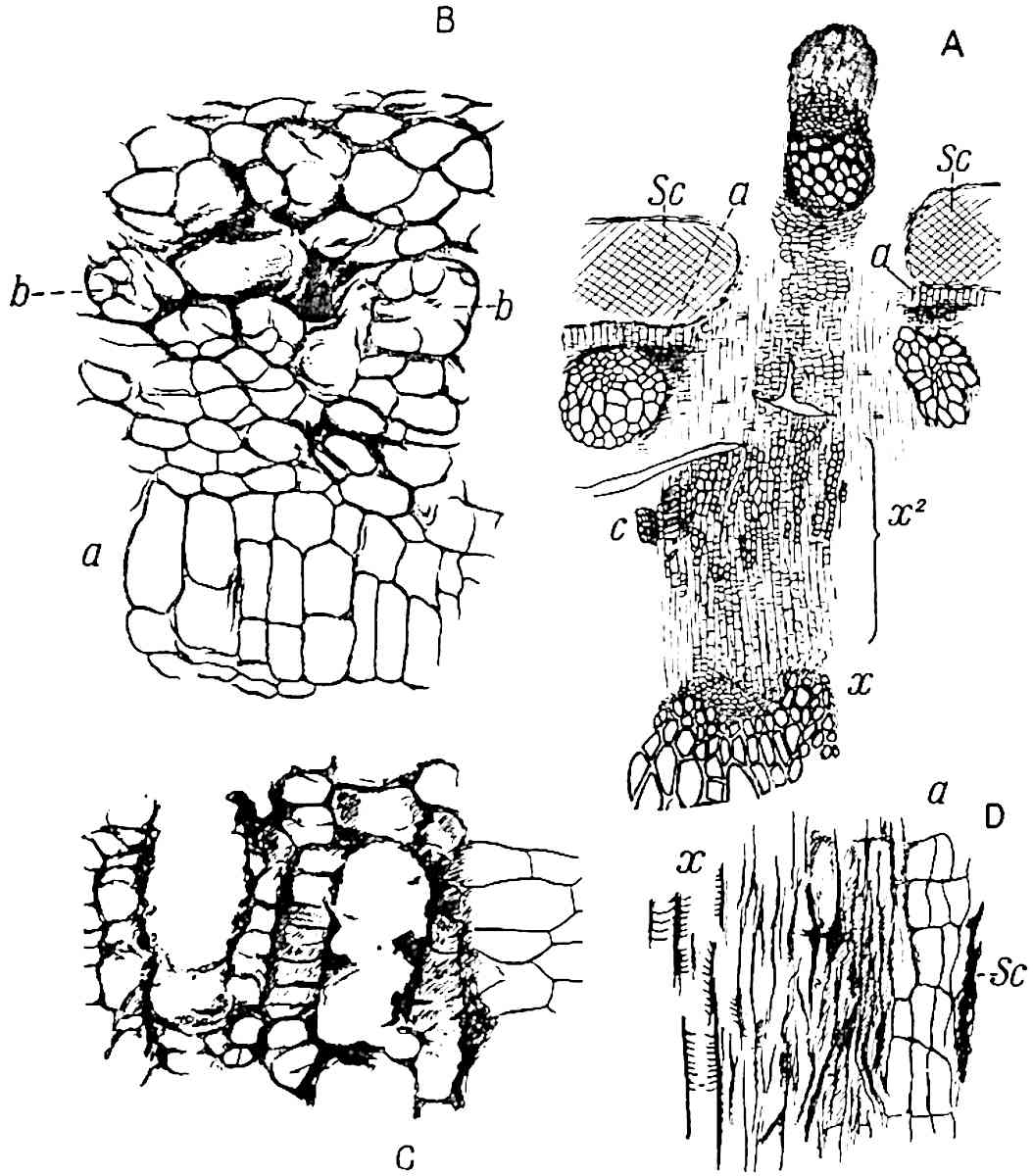 I wish to thank my colleague, Mr A. G. Tansley, for placing at my disposal several blocks originally published in the pages of the New Phytologist. To Professor Bertrand of Lille and to his son Dr Paul Bertrand I am indebted for several prints andvii descriptive notes of specimens in their possession. My friends Dr Nathorst of Stockholm and Dr Zeiller of Paris have generously responded to my requests for information on various points. I wish especially to thank Dr Kidston for several excellent prints of specimens in his collection and for the loan of sections. I have profited by more than one examination of his splendid collection at Stirling. Professor Weiss has generously allowed me to borrow sections from the Manchester University collections, more especially several which have been reproduced in the chapter devoted to the genus Lepidodendron. To Professor F. W. Oliver my thanks are due for the loan of sections from the collection under his charge at University College. I have pleasure also in thanking Dr Scott, not only for lending me sections of a Lepidodendron and for allowing me to use some drawings of Miadesmia originally made by Mrs Scott for reproduction in his invaluable book, Studies in Fossil Botany, but for kindly undertaking the laborious task of reading the proofs of this volume. It would be unfair to express my gratitude to Dr Scott for many helpful suggestions and criticisms, without explicitly stating that thanks to a friend for reading proofs must not be interpreted as an attempt to claim his support for all statements or views expressed. The General Editor of the Series, Mr A. E. Shipley, has also kindly read the proofs. I am under obligations also for assistance of various kinds to Prof. Thomas of Auckland, New Zealand, to Mr Boodle of Kew, to Mr D. M. S. Watson of Manchester, to Mr T. G. Hill of University College, and to Mr Gordon of Emmanuel College, Cambridge. I am indebted to the kind offices of Miss M. C. Knowles for the photograph of the specimen of Archaeopteris hibernica in the Irish National Museum, Dublin, reproduced on page 561.
