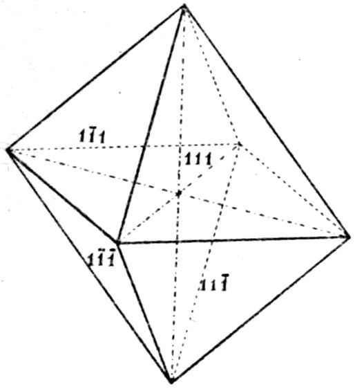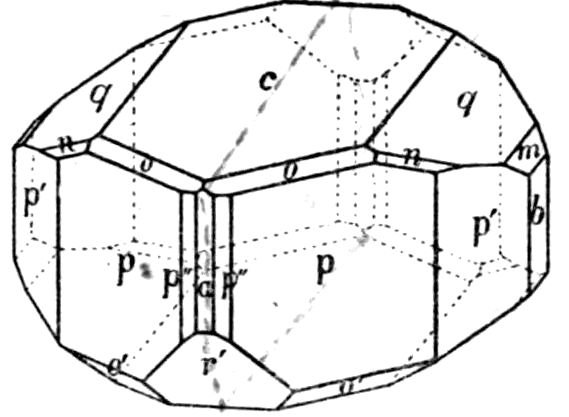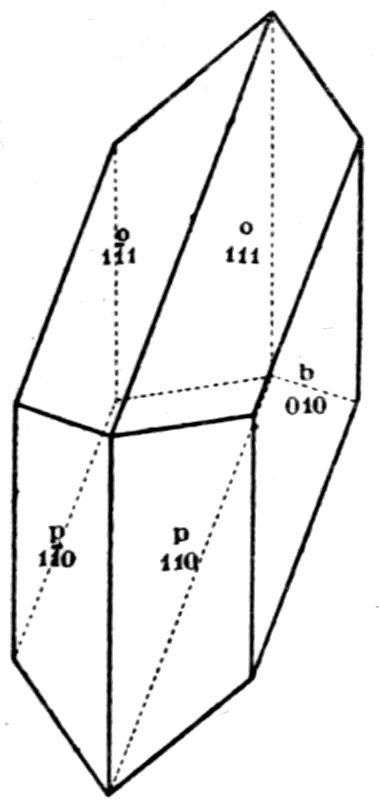 This illustration from the naturally occurring minerals might readily be supplemented by almost any common artificial chemical preparation, sulphate of potash for instance, K2SO4, the orthorhombic crystals of which take the form of elongated prisms, even needles, on the one hand, or of tabular plate-like crystals on the other hand, according as the salt crystallises by the cooling of a supersaturated solution, or by the slow evaporation of a solution which at first is not quite saturated. In both cases, and in all such cases, whether of minerals or chemical preparations, the same planes are present on the crystals of the same substance, although all may not be developed on the same individual except in a few cases of crystals particularly rich in faces; and these same planes are inclined at the same angles. But their relative 14development may be so very unlike on different crystals as to confer habits so very dissimilar that the fact of the identity of the substance is entirely concealed.