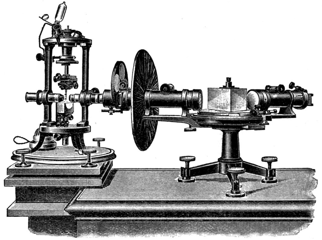 When nature has been permitted to have fair play, and the crystal has been deposited under ideal conditions, the planeness of its faces is astonishingly absolute. It is fully equal to that attained by the most skilled opticians after weeks of patient labour, in the production of surfaces on glass or other materials suitable for such delicate optical experiments as interference-band production, in which a distortion equal to one wave-length of light would be fatal. In all such cases of ideal deposition, those interfacial angles on the crystal which the particular symmetry developed requires to be equal actually are so, to this same high degree of refinement. This fact renders possible exceedingly accurate crystal measurement, that is, the determination of the angles of inclination of the faces to each other, provided refined measuring instruments (goniometers), pure chemical substances, and the means of avoiding disturbance, either material or thermal, during the deposition of the crystal, are available.