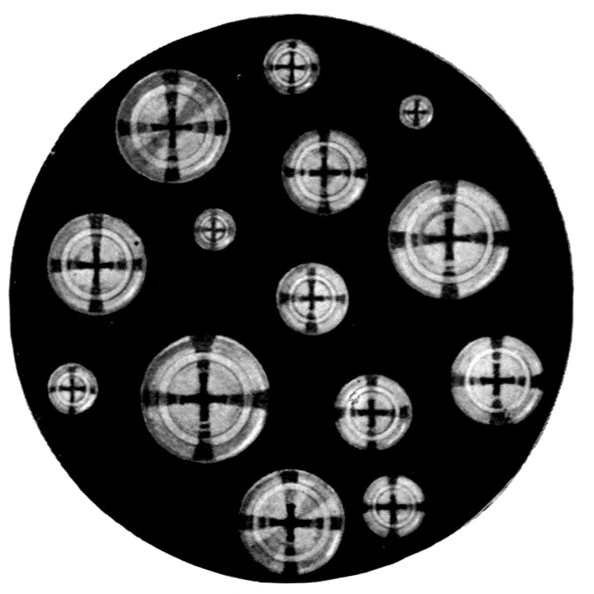 DIRECT REPRODUCTIONS OF AUTOCHROME PHOTOGRAPHS OF SCREEN PICTURES IN POLARISED LIGHT.