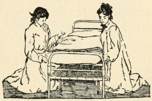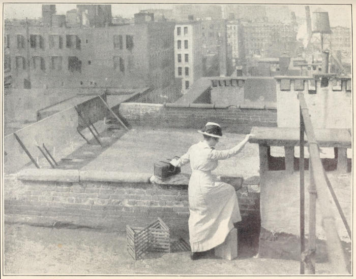 The much-esteemed bathroom, small and dark, was in the hall, and necessitated early rising if we were to have the use of it; for, as we became known, we had many callers anxious to see us before we started on our sick rounds. The diminutive closet-space was divided to hold the bags and equipment we needed from day to day, and more ample store-closets were given us by the kindly people in the school where I had first given lessons to East Side mothers. Any pride in the sacrifice of material comfort which might have risen[12] within us was effectually inhibited by the constant reminder that we two young persons occupied exactly the same space as the large families on every floor below us, and to one of our basement friends at least we were luxurious beyond the dreams of ordinary folk.