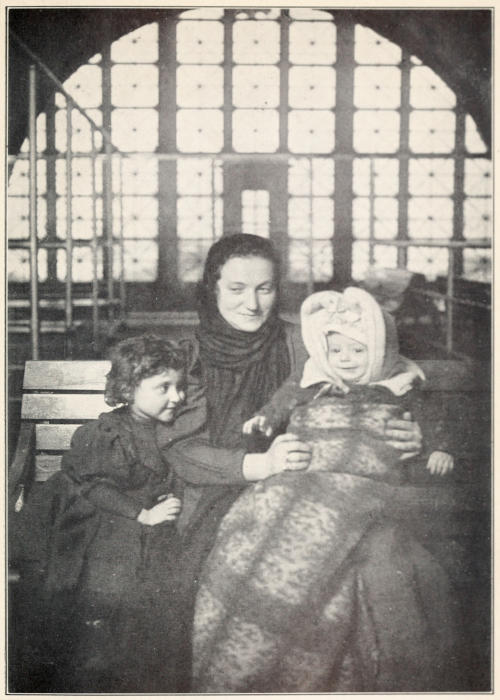 A pleasanter story is that of the B⸺ family. One evening two neighborhood women, shawls over their heads, called to ask if I would contribute to a fund they were raising to furnish quarters for a family just arrived from Ellis Island. When I expressed wonder that they should have been permitted to land in a penniless condition the women shrugged their shoulders in characteristic fashion and said, “Well, they’re here, and we must do something.”