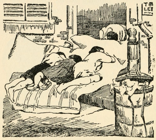 “The simplest standards which military history shows are essential in handling such artificial bodies of people are grossly violated. Sanitary conveniences are sometimes entirely omitted; the men drink any kind of water they can obtain, and filthy grounds are of no evident[297] concern. The state does not inquire whether there are hospitals or physicians, medicine, emergency aids, or anything of the kind. Notice is taken of gambling, drunkenness, and immorality only when they impair the efficiency of the men.... Men left alone in these miserable, uninspected shacks, where vermin and dirt prevail ... must inevitably deteriorate. The testimony of contractors themselves is that many of the laborers become nomads, drifting from camp to camp, drinking, quarreling, and averse to steady work.