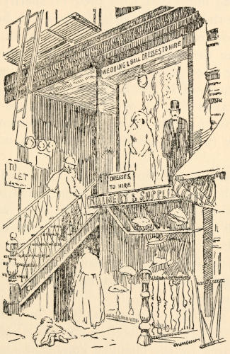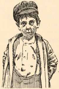 The child led me on through a tenement hallway, across a court where open and unscreened closets were promiscuously used by[6] men and women, up into a rear tenement, by slimy steps whose accumulated dirt was augmented that day by the mud of the streets, and finally into the sickroom.