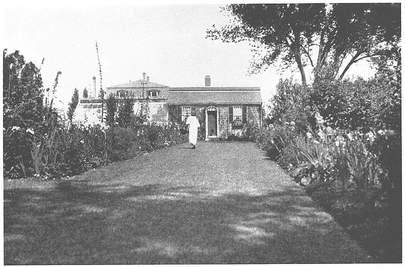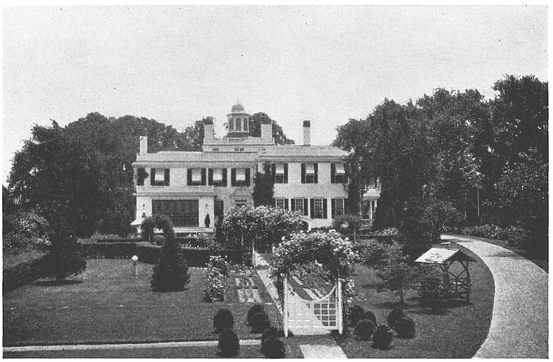 The house was sold by the Charles Jackson heirs in 1872 to Lucia J. Briggs, the wife of the Rev. George W. Briggs, who occupied it as a summer residence until 1898, when it was purchased by Charles L. Willoughby, of Chicago, for a summer home. Gardens were planned and planted. Joseph Everett Chandler, authority on the restoration of New England houses and author of books on the subject, was retained to supervise the work, and it is he we have to thank that so much was saved when it was converted into a gentleman’s estate. He it was who saw to it that the new windows, inner shutters, paneling, and many details, are in keeping with the original structure. He even saw to it that the Tory chimney, with its coping painted black, was saved and that the two lovely linden trees, said to have been planted by Edward Winslow’s daughter Penelope, were protected during the alteration. In tearing off the ell on the north side, a board was uncovered on which was painted “Built by William Drew 1820,” which indicates additions were made that year. The house was moved back thirty feet, raised five, porches were built, side doors, new rooms, and a cupola or, as some erroneously call it, a Widow’s Walk, were added.