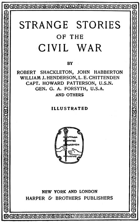 Of the great campaigns of those terrible four years, when vast armies marched and countermarched and wrestled in battles of giants, there are many accounts, and yet the necessarily limited space allotted in short histories may well be supplemented by narratives alive with human interest. That is the purpose of this book. Mr. Henderson’s recollections, which serve as a prologue, will take the boy of to-day back to these eventful years and make him realize what it was to live in the days when North and South were summoning their sons to arms. Mr. Shackleton’s dramatic story is the first of some imaginative tales of the war which aim to preserve the atmosphere of those thrilling days in the guise of fiction. The stories which follow—“The Blockade Runner” and “Two Days with Mosby,” are believed to be essentially relations of actual experiences; and the balance of the book, including the tales of Lincoln, Worden and the Monitor, Sheridan’s[xi] Ride, and Lee’s surrender, is vivid, first-hand history. One feature of this book is that the latter stories are told by those who took an actual part. This is a book of adventure and of heroic deeds, which are not only of absorbing interest, but they also bring a closer realization of the one country which was welded together in the furnace of the Civil War.