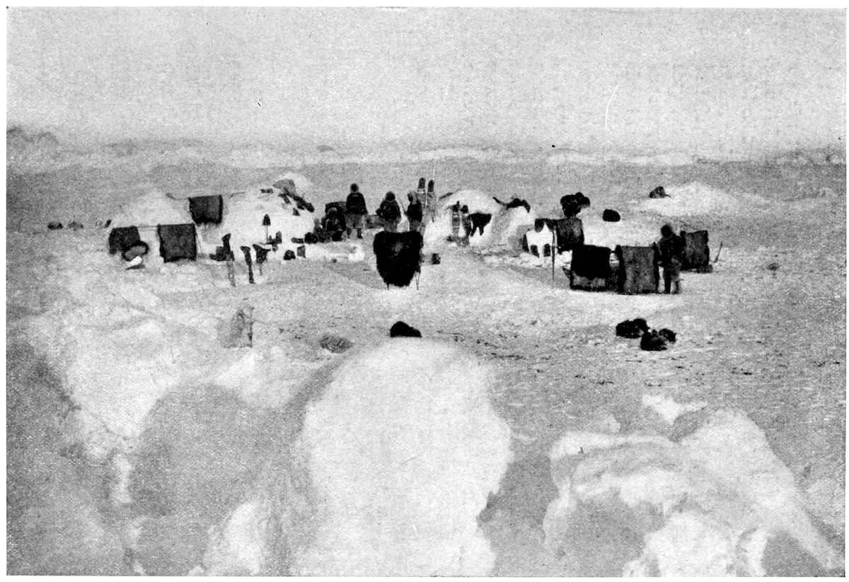 As a rule no Eskimo family lives in one place more than two consecutive years. The reasons are several; perhaps the most important being a natural feeling of unrest. The Eskimo feels more keenly than any other people that it is not possession, but acquisition which gives men pleasure and sense of power. Then, too, there is the desire for change of food. A prolonged diet of bear flesh has quite as much irksome sameness for him, as hard tack has for the sailor. Scarcity of game is another vital consideration. After a siege of several months’ duration, the food supply is likely to 386become exhausted and then nothing is left for the man to do, but shift.