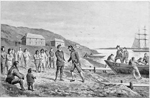 Aside from the novelty and excitement of experiences to be expected in a new land, the immediate financial terms of the position were not great. An iron-clad contract providing for payment of ten pounds per year for the first four years was signed by the lads. This, it will be noted, was the equivalent of about fifty dollars each per year, which was surely a low salary for picked young men. When it[16] was considered that the duties to be expected of the men were not only arduous but dangerous, and would require isolation from civilization for a considerable period, the wages offered could not be said to be large. However, the outlook for a future in a country which was known in those days as a mighty wilderness, with rivers and lakes so large that the early explorers had been able to trace only a slight portion, and famed for its game and fur-bearing animals, possessed a wonderful attraction. Again, since money had been so little known at home the sum seemed very large to them, much larger than it would have done to lads under different circumstances. Some idea of their characters may be gleaned from the fact that they requested a special clause in the contract providing for one half of their earnings to be paid direct to their parents, and with the contract once signed it was realized by all who knew them that it would be thoroughly lived up to. They were prepared to give their best in the hope of making a favorable impression upon the Company’s Chief Factor, who had charge of the concern’s business in Canada. To them the word of encouragement meant considerably more than did their wages.