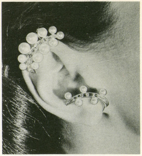 | THE SUPREME IMPORTANCE OF THE EARCLIP 127 EARRINGS THROUGH THE AGES 127 THE SIGNIFICANCE OF THE EARS 129 THE EARCLIP AND THE FACIAL CONTOUR 130 THE SHAPE OF YOUR FACE 131 DETAILS OF THE FACE 132 VERSATILE EARCLIPS 133 THE HAIR AND THE EARCLIP 133 THE BRUNETTE 134 THE DARK-HAIRED 134 THE REDHEAD 135 THE BLONDE 135 AS THE HAIR TURNS GREY 136 IMPORTANT CONSIDERATIONS IN SELECTING EARCLIPS 136 | |