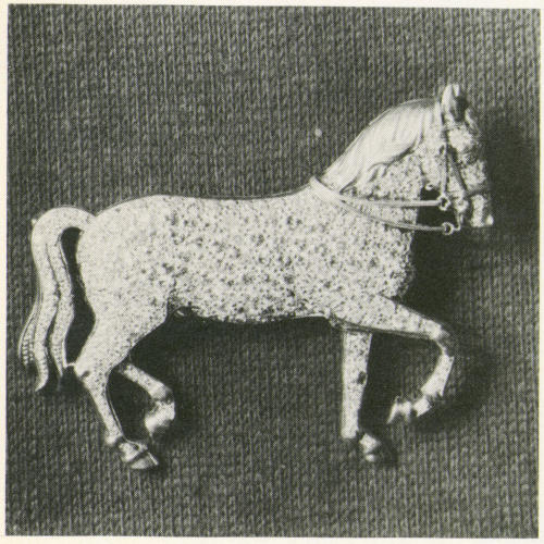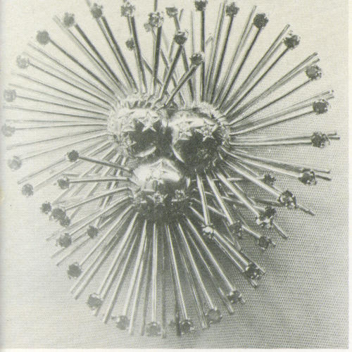 While the 250 odd rings of England’s last King Henry were probably seldom equalled for one person, a more modest but[303] more representative listing was given, in 1649, of the rings of a country lady. She possessed, among other jewels, a toadstone ring, two Turkies (turquoises), six thumb rings, three alderman’s seals, five gemmels and four death’s heads. Always, in every period and every guise, the realm of jewelry has been marked by the reign of the ring.