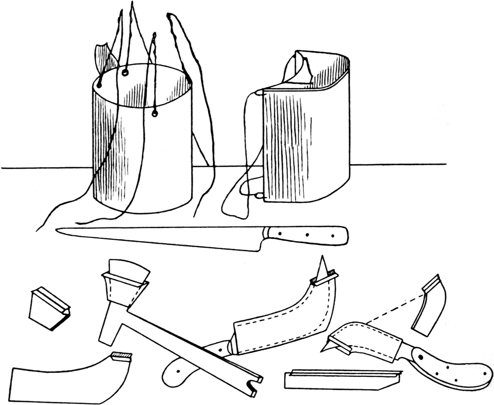 Messer und Beile zum Anzapfen der Kautschukpflanzen