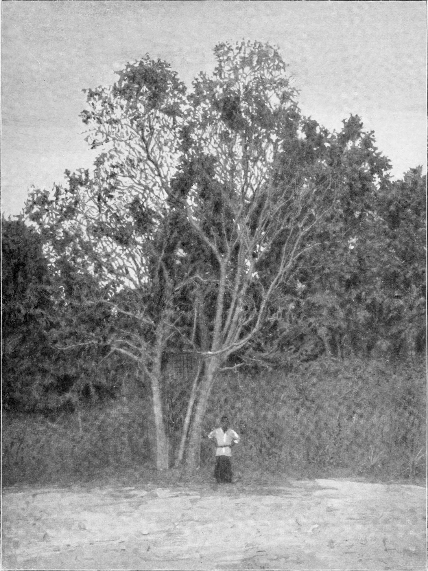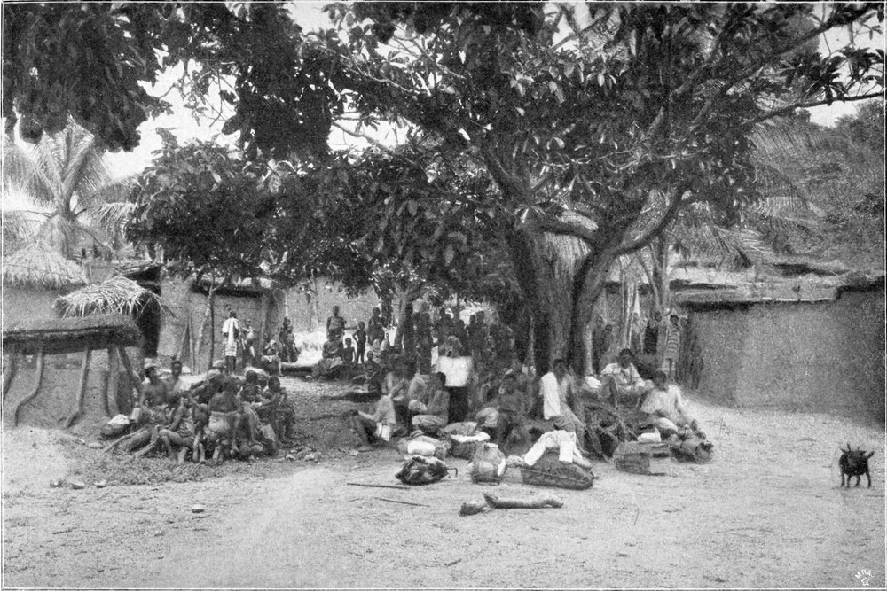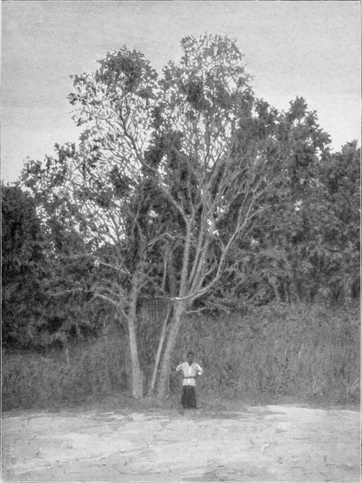 Vogelii-Kautschukbaum im Dorfe Lolobi