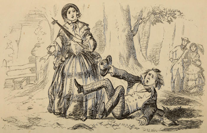 Note by the Editor.—In transcribing this poem from my friend’s MS., I feel it my duty to state that his touching description of his love was not without foundation. The “knock-down blow” he received did not entirely floor him; he sought to see the lady again, and, on being repulsed, commenced a very pretty little poem, beginning—