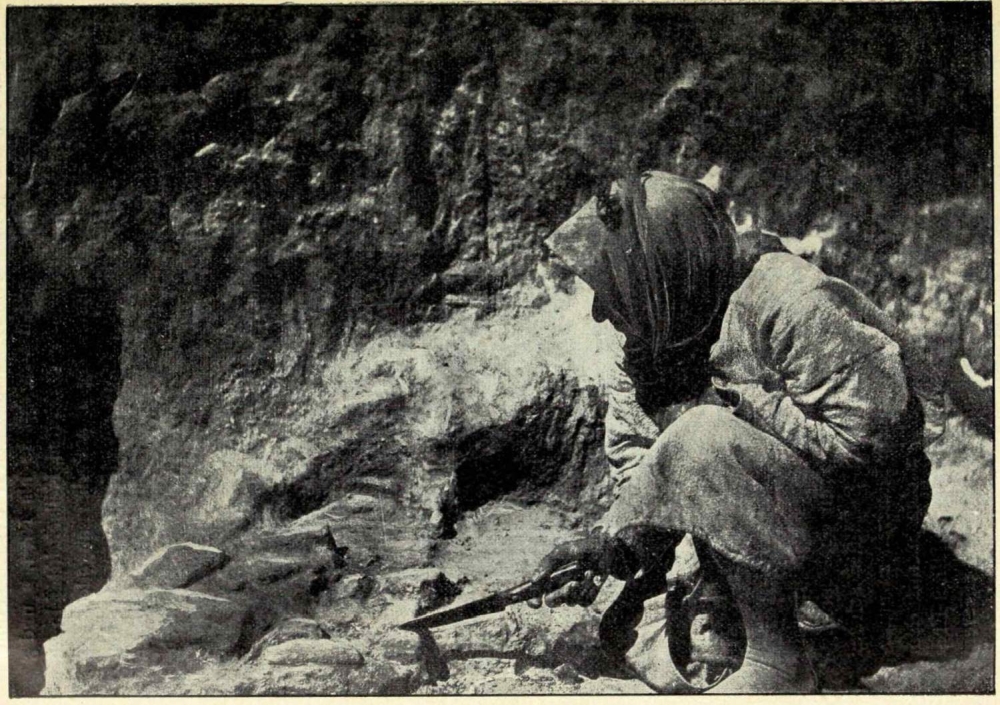 Ausser den oben erwähnten 23000 literarischen Keilschrifttexten der Bibliothek und Priesterschule sammelte die Expedition nahezu 28000 meist gut erhaltene geschäftliche Urkunden (Abb. 6) aus dem dritten, zweiten und ersten Jahrtausend hauptsächlich im westlichen Stadtteile und etwa 2000 vorsargonische Keilschrifttafeln aus dem fünften und vierten vorchristlichen Jahrtausend meist in den unteren Schichten des Bêl-Tempels. Zu diesem Gesamtresultate von 53000, vielfach fragmentarischen Keilschrifttafeln, an Grösse zwischen 2 cm und nahezu ½ m schwankend, zu deren Auffindung eine Gesamtarbeitszeit von etwa 2½ Jahren unsererseits nötig war, gesellen sich ca. 800 oft sehr kleine Vasenfragmente aus stalagmitischem Kalkstein, welche sich als besonders wertvolle Quellen für die Rekonstruktion der ältesten Geschichte Babyloniens erwiesen. Dazu kommen einige unveröffentlichte Grenzsteine aus der Zeit der Könige der Pasche-Dynastie (ca. 1100 v. Chr.); etwa 20 beschriebene Türsteine von den Tagen der uralten Könige Lugal-kigub-nidudu und Sargon I. bis herab zum Kassitenherrscher Kurigalzu; eine ganze Anzahl königlicher Votiv-Inschriften auf Türkis, Achat, Lapislazuli, Magnesit, Feldspat u. s. w. aus dem zweiten Jahrtausend; 60-80 schön geformte Backstein-Stempel Sargons I. und Narâm-Sins, nicht mit Unrecht bezeichnet als die ersten historischen Handdruckpressen zweier Könige, welche vor den Nuffar-Ausgrabungen allgemein als halbmythische Personen betrachtet wurden. Ferner erwähne ich etliche sumerische Steintafeln, die Bau-Urkunden mehrerer Könige von Ur (drittes Jahrtausend), die Toncylinder Samsu-ilunas, Sargons II., des Zerstörers Samarias, und Aschurbânapals, des letzten grossen Herrschers von Assyrien. In Kürze mag wenigstens angedeutet werden, dass 3-400 Siegelcylinder aus den Geschäftshäusern und den parthischen Gräbern und ebenso viele hebräische, mandäische, syrische und arabische Tonschalen gesammelt wurden. Die letzteren wurden meist umgestülpt am Erdboden gefunden (Abb. 8). Hie und da lag ein kleiner beschriebener Schädel (offenbar von einem Tiere herrührend) oder ein beschriebenes Hühnerei als Opfer für die zu besänftigenden bösen Geister darunter. In anderen Fällen waren zwei Schalen mit der Innenseite durch Erdpech zusammengekittet, um das Entweichen der offenbar darin gebannt gedachten Dämonen zu verhindern.