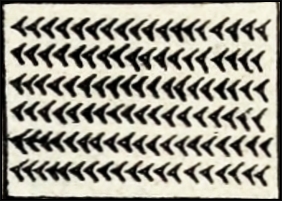 Es erübrigt sich zum Schluss, noch ein Wort über die älteste vorhistorische oder sumerische Periode des Heiligtums zu sagen. Wann der Übergang von der sumerischen zur semitischen Okkupation sich geschichtlich vollzogen hat, können wir heute nicht mehr, oder vielleicht noch nicht, genau feststellen. Um 4000 v. Chr. sind jedenfalls die semitischen Eroberer bereits im Besitze des Landes. Sobald wir die Plattform Narâm-Sin’s durchbrechen,-63- tritt uns mancherlei Eigentümliches entgegen. An Stelle der quadratischen Backsteine, die unter der älteren Sargon-Dynastie ihre grösste Form in Nippur erreichen (circa 40-50 cm), um nicht lange danach die bis zu den Tagen Aschurbânapals und Nebukadnezars, also mehr denn 3000 Jahre hindurch sich haltende konstante Grösse von 30-33 cm zu erreichen, treten in vier leicht nachweisbaren vorsargonischen Schichten sogenannte plano-konvexe Backsteine, d. h. rechteckige (in den ältesten Formen aber an den Ecken abgerundete) Backsteine mit flacher Unterfläche und mehr oder minder stark gewölbter Oberfläche (Abb. 49). Die letztere hat oft einen bis zwei Fingereindrücke oder (resp. und) einen oder mehrere mit dem Finger oder einem Schilfblatt gezogene Längsstreifen. Sie ähneln in ihrer ältesten Form (17-20 cm lang) roh bearbeiteten Steinen, als deren Nachahmung sie offenbar zu gelten haben (vgl. 1. Mose 11). In Übereinstimmung mit der Angabe-64- in dem eben citierten Kapitel der Bibel ist Erdpech fast ausschliesslich das älteste Bindemittel in den Bauten der untersten Schichten Nippurs. Dabei ist es nicht zufällig, dass der älteste Gebrauch gebrannter Backsteine in Babylonien sich in Verbindung mit den für das Leben und Gedeihen im Innern des Landes so wichtigen Brunnen und Cisternen nachweisen lässt, und dass das Bild für Backstein offenbar mit der eigentümlichen Art und Weise, in welcher die Backsteine jener ältesten Brunnen gelegt wurden — in der Architektonik als „Häringsgrätenart‟ bekannt — zusammenhängt.