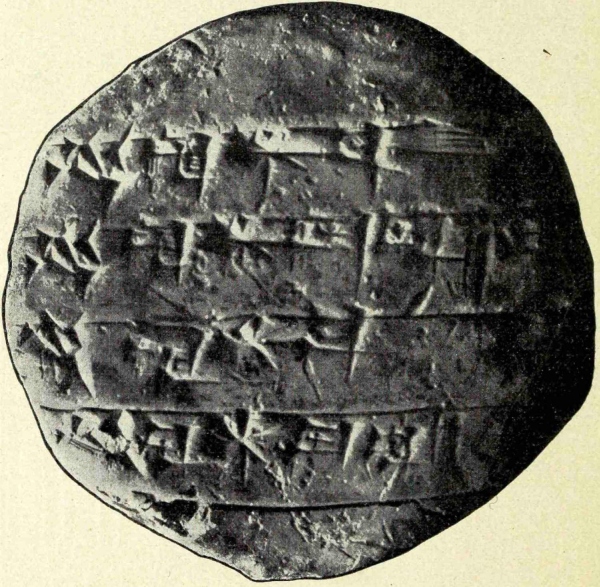 Ich kann die semitische Periode nicht verlassen, ohne mit einigen Worten wenigstens den Inhalt der berühmten Tempelbibliothek zu skizzieren. Wie zu Anfang dieses Vortrags angedeutet wurde, ist es mir gelungen, in dem dreieckigen Hügel auf der Südseite des Tempels mit seiner durchschnittlichen Erhebung von fast 8 m die Existenz von zwei übereinander liegenden Bibliotheken nachzuweisen. Wertvoll wie die spätere und weit-53- kleinere Tafelsammlung zweifellos ist, da sie Stücke aus mehr denn 3 Jahrtausenden enthält, die zum Teil schon als Fragmente von den Priestern der neubabylonischen Zeit methodisch ausgegraben wurden, ist sie doch an Bedeutung und Vielseitigkeit des Inhaltes vollständig in den Schatten gestellt durch die 23000 Texte der älteren Bibliothek, welche bereits 200 Jahre lang in Trümmern lag, ehe Hammurabi wieder Ruhe und Ordnung im Reiche herstellte. Mit wie lebendigem Interesse die spätbabylonischen Gelehrten nicht nur, wie eben angedeutet, selbst ausgruben, sondern auch auswärtige Ausgrabungen wie die des Königs Nabonidos in Sippar und Akkad verfolgten, beweist eine im Besitz der Universität von Pennsylvania befindliche einzigartige Antiquität. Es ist eine aus feingeschlemmtem, aber ungleichmässig gebranntem Ton hergestellte Tafel, an den beiden Längsseiten leicht gebogen. Auf der einen Breitseite steht in umgekehrter erhabener Schrift eine uns bereits aus Nippur wohlbekannte Inschrift des alten Königs Sargon I. (ca. 3800 v. Chr.): „Sargon, der mächtige König der Untertanen des Bêl‟. Auf der Rückseite findet sich in den charakteristischen Schriftzügen des 6. Jahrhunderts als keilschriftlicher Vermerk eingetragen, dass das Ganze der Tonabdruck (zîpu) eines im Palaste König Narâm-Sins zu Akkad aufbewahrten Denkmals ist, welches der Schreiber Nabû-zêr-lîschir mit eigenen Augen gesehen hat. Was für ein ausgebildetes archäologisches Interesse im alten Babylonien!