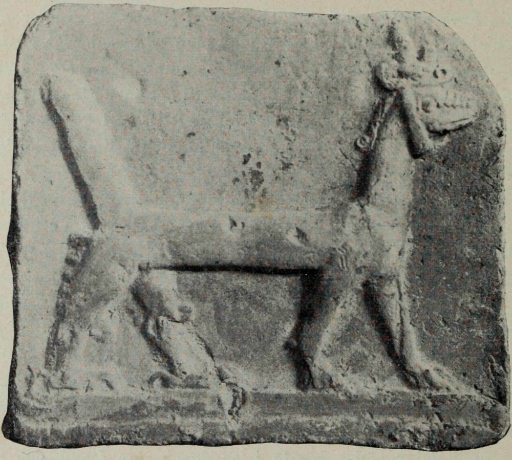 Zeichenunterricht wurde ebenfalls erteilt. Ich kenne eine Reihe von Tafeln, auf denen sich gerade und schiefe Linien, Zickzacks, Karos, Lattenmuster und ähnliche Figuren finden. Dann schritt man zum freien Handzeichnen nach Vorlagen und der Natur, wobei unbegabte Schüler sich bisweilen ganz Schreckliches leisteten (Abb. 41). Einige dieser Zeichnungen mögen Karikaturen darstellen. Später ging es ans Modellieren, an Reliefdarstellungen und das Bearbeiten von freistehenden Figuren, ans Gravieren, Siegelschneiden usw. So viel lässt sich schon jetzt klar erkennen, dass man beim Unterricht ganz methodisch verfuhr. Selbst humoristische Darstellungen, die wir bei den alten Babyloniern gar nicht recht erwartet hätten, finden sich vereinzelt unter den ausgegrabenen Gegenständen. Ich weise auf ein der Priesterschule entstammendes Tonrelief hin (Abb. 42), in welchem ein die Laute schlagender Hirt von seinem vor ihm stehenden Hunde, der das Maul weit geöffnet hat, mit langgezogenem Geheul begleitet wird. Der Unterricht im Vermessen und Berechnen von Grundflächen von Feldern, Gärten, Mauern, Kanälen usw. liesse sich an der Hand einer ganzen Anzahl von Tafeln illustrieren.