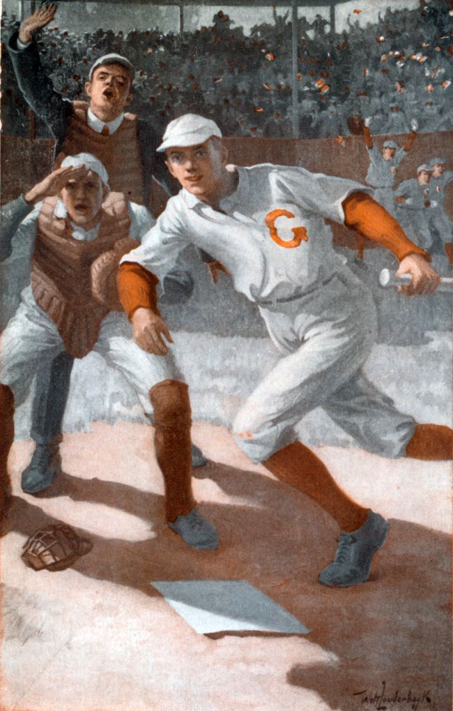 Nick hit safely and advanced Dud, Winslow fouled out to the catcher and Hugh Ordway, putting all his strength into a terrific swing, sent a screeching fly far into right field but not far enough to be out of reach of the guardian of that territory. A long hard run and a brilliant catch and the half-inning was over.