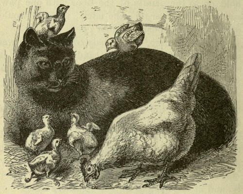 9. After a while the lady would take the mouse, and thank puss with a pleased look and a kind tone, and then give it to the kittens, the cat looking on well pleased while they ate it.
