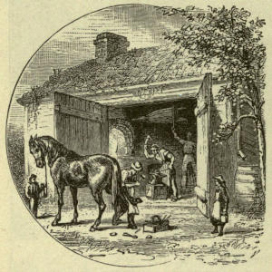 8. Then they took old Major into the shop, and the blacksmith pared the hoof and set the shoe. In nailing on the shoe, he said he must be careful not to drive the nails too far in where the hoof was tender, or it would make the horse lame.