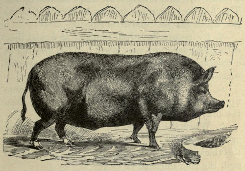 1. The hog is about as large as a sheep, but its legs are shorter. It has a cloven hoof, but it does not chew a cud like the sheep.