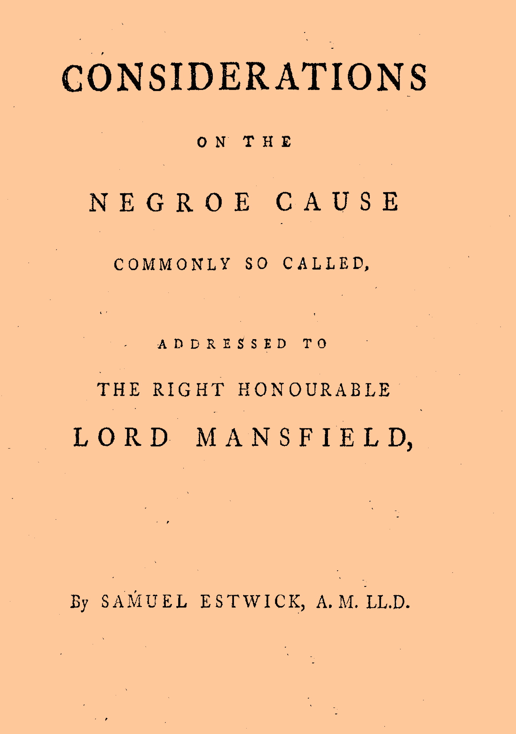 BEING, both by birth and fortune, connected with one of the Islands in America, I was led, somewhat interestedly as your Lordship may suppose, to attend to the arguments that were lately offered in the Court of King’s Bench, in the Case of Somerset the Negroe versus Knowles and others. It was a new case, said to be full of concern to America; and it had engrossed much of general expectation. My object therefore was that of information: but, without meaning to lessen the labours, or[20] depreciate the merits of the learned counsel concerned therein, I must confess, that the lights thrown on the case did by no means appear to me as, on either side, decisive of the point in question[1]. It is true that a vast and extensive variety of reading was shewn and discovered: the profoundest depths of learning and science were fathomed and explored: lawgivers, philosophers, civilians, from all historic existence, were brought to light and examined: the[21] examples, definitions, and opinions, which Moses, Aristotle, Justinian, Grotius, Pufendorff, and the rest, had given of slavery, were cited, explained, and enlarged upon: the edicts and regulations of French, Spanish, German, Flemish, and Dutch police on this head were mentioned and produced.[22] But, my Lord, with all due deference and submission, may I ask, how applicable was this antiquated and foreign doctrine to the case then under your Lordship’s contemplation? The politics of Aristotle are not the rules of the Court of King’s Bench; neither is Roman jurisprudence the law of that court. As a display of general knowledge,[23] it had with me, as it must have had with every one present, its great abundance of merit and commendation; and I had followed the learned gentlemen, with the highest pleasure, in their travels and pursuits abroad in search of matter of illustration, if the case had been brought home with them at last, and rested on its own native ground and foundation. But herein, my Lord, I found myself unsatisfied and disappointed: for how the question remained with your Lordship as a point of law for the judgment of the Court, I own, I was unable to comprehend, or to learn. It is therefore, my Lord, that I now take the liberty to offer the following Considerations to your Lordship’s notice and observance; trusting to the importance of the subject, and to your wonted candour, for my apology and pardon in the attempt.