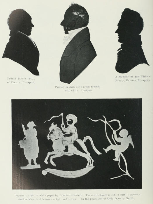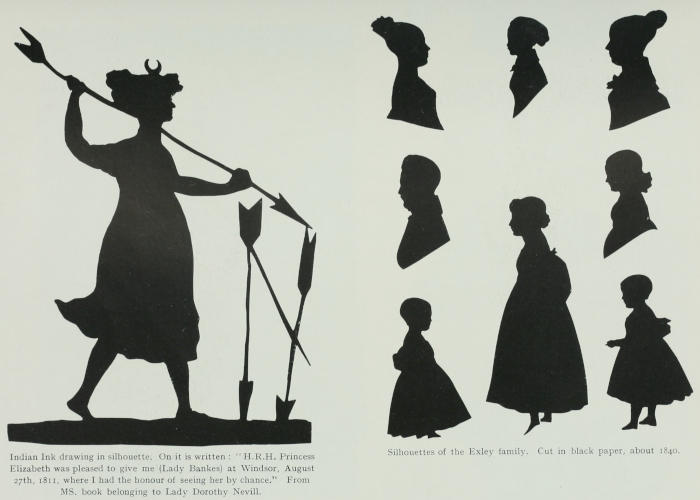 Silhouette drawings in Indian ink, by Princess Elizabeth, daughter of George III. They were given by the Princess to Lady Bankes, at Windsor, August 27th, 1811, and are now in the possession of Lady Dorothy Nevill.
