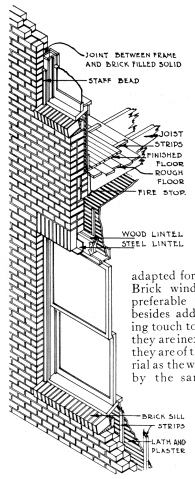 Again the builder must consider the question of comfort and health. An 8-inch furred brick wall will require less coal to keep the house warm than in case of frame. This saving, however, is not nearly as important as uniform comfort which, especially in winter, has a vital bearing on the health and welfare of the family, more particularly as it affects very young or delicate children and old people, or even the strong who may, for the time being, be indisposed. The man who builds a good brick house saves on his coal and doctor bills.
