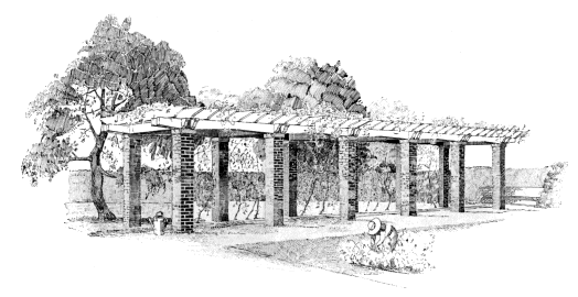But this is not all there is to be said on the artistic side by any means. The structural necessity of bonding the brick makes possible any number of beautiful bond and pattern effects, as illustrated on pages 33-35; and the kind of mortar joint, struck, cut flush, tooled, or raked (Fig. 57), properly toned with a color to harmonize with the brick, produces the most charming results which, in sunshine or shadow, give ever varying artistic effects.