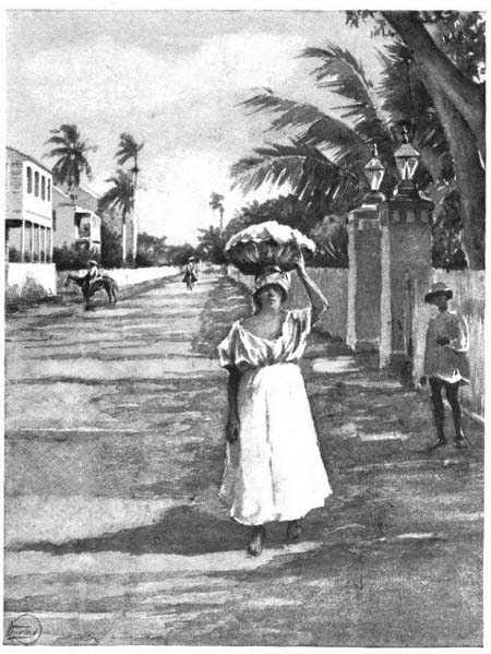 [281]Caracas was the last city we visited on our tour, and perhaps it is just as well that this was so, for had we gone there in the first place we might have been in Caracas still. It is easy to understand why it is attractive. While you were slipping on icy pavements and drinking in pneumonia and the grippe, and while the air was filled with flying particles of ice and snow, and the fog-bound tugs on the East River were shrieking and screeching to each other all through the night, we were sitting out-of-doors in the Plaza de Bolivar, looking up at the big statue on its black marble pedestal, under the shade of green palms and in the moonlight, with a band of fifty pieces playing Spanish music, and hundreds of officers in gold uniforms, and pretty women with no covering to their heads but a lace mantilla, circling past in an endless[282] chain of color and laughter and movement. Back of us beyond the trees the cafés sent out through their open fronts the noise of tinkling glasses and the click of the billiard-balls and a flood of colored light, and beyond us on the other side rose the towers and broad façade of the cathedral, white and ghostly in the moonlight, and with a single light swinging in the darkness through the open door.