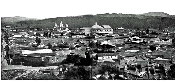 On the corner of the principal plaza stands the cathedral, with a tower. Ten soldiers took refuge in this tower four years ago, during the last[246] revolution, and they made so determined a fight from that point of vantage that in order to dislodge them it was found necessary to build a fire in the tower and smoke them out with the fumes of sulphur. These ten soldiers were the last to make a stand within the city, and when they fell, from the top of the tower, smothered to death, the revolution was at an end. This incident of warfare is of value when you contrast the thing done with its environment, and know that next to the cathedral-tower are confectionery-shops such as you find on Regent Street or upper Broadway, that electric lights surround the cathedral, and that tram-cars run past it on rails sunk below the surface of the roadway and over a better street than any to be found in New York city.