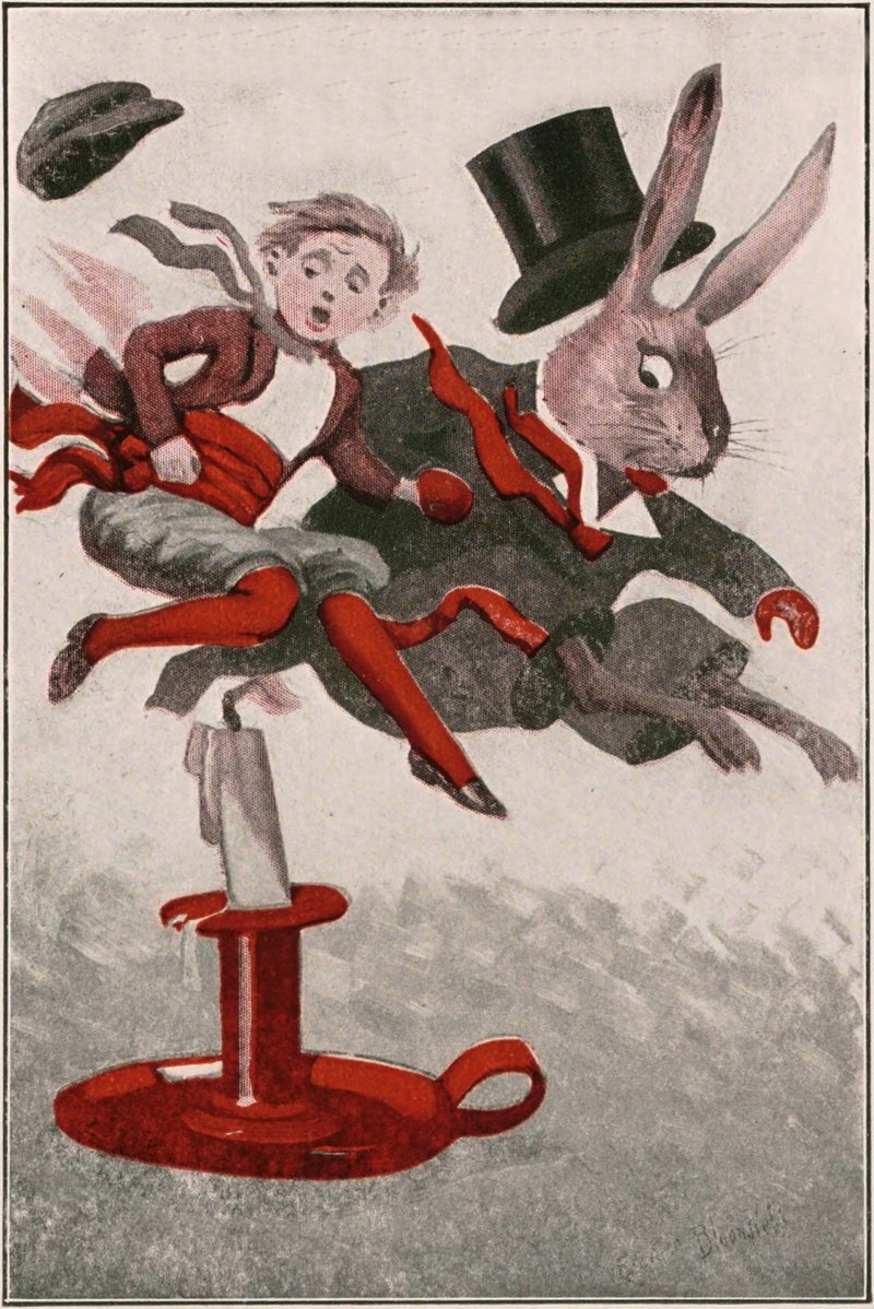 Then the old rabbit gentleman, who was as fond of fun as a kitten, would put on his tall silk hat, take his red, white and blue-striped barber-pole rheumatism crutch, that Nurse Jane had gnawed for him out of a corn-stalk, and he would go out to play with the rabbit children, about whom I have told you in other books.