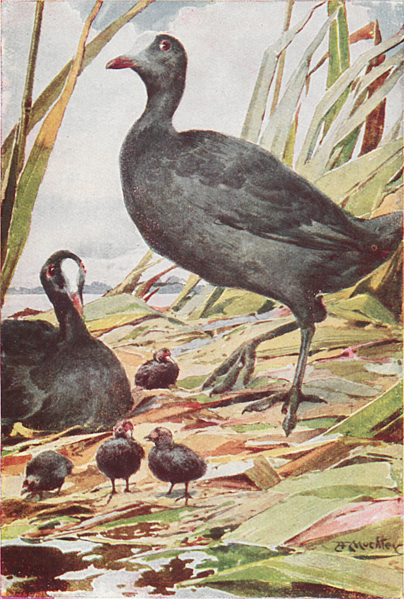 Das grünfüßige Wasserhuhn und das Bläßhuhn