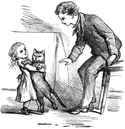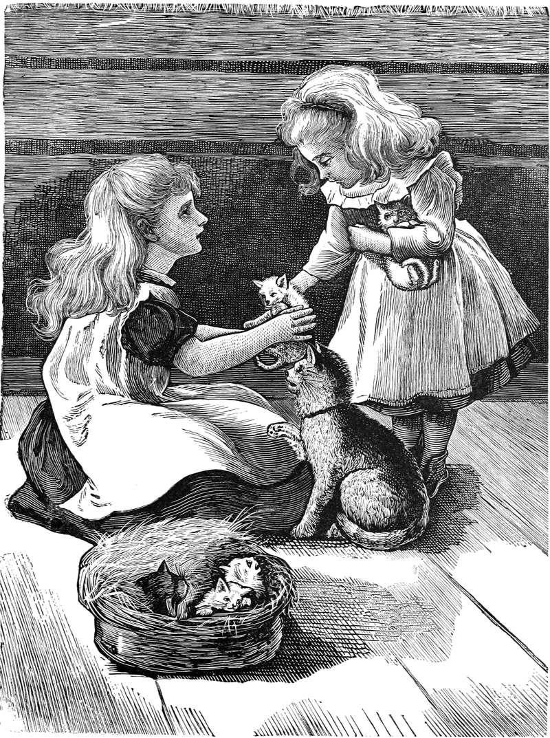 “One day when girl-Mary sat by our basket, girl-Jane came down there bringing her own cat and kittens. Girl-Jane had called to see us many times, and I had been pleased with the looks of her face, and the sounds of her voice, and the touches of her fingers; and she knew the best way of stroking. “Girl-Jane was smaller than girl-Mary, but she knew more. Girl-Jane said she wanted girl-Mary to change kittens with her. She wanted me and Minnie because we were whiter than her kittens.