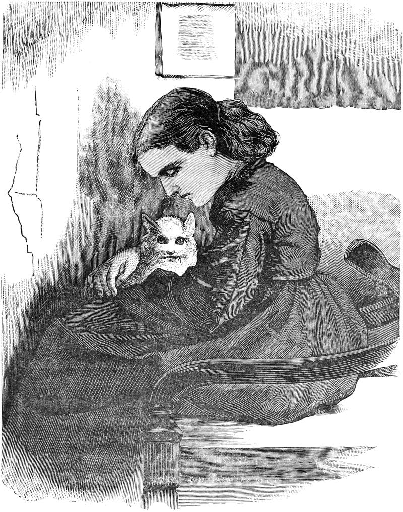 “I went every day to see poor Ellen. I used to go up after breakfast and scratch the door and get myself let in. When she combed her hair I sat close to her looking-glass, and looked at her while she combed her hair, and when she sat down to rest I lay on the floor and waited, and when she put on her shoes I kept at her feet, and rubbed her feet, and then I rubbed against her a good deal and purred to be taken up, and she took me up. Poor Ellen could not walk much but she could hold me. She liked me because I kept myself so clean and white.