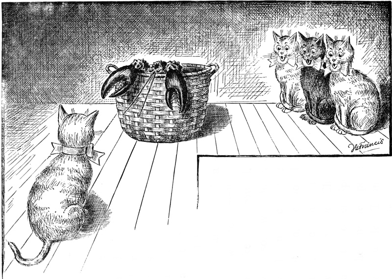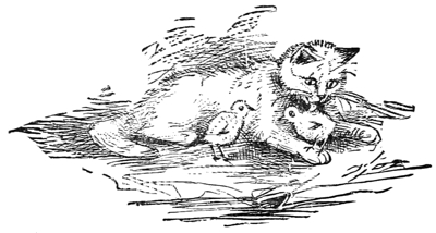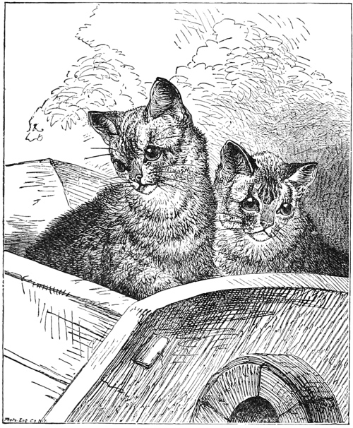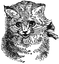 “I had the same luck in fishing. There was a stream at the bottom of our garden and at its edge were large mossy rocks on which a cat might stretch herself in the sun, or if the day were hot she might lie in their cool shade. Trees grew near by and any other cat would have often caught a bird among their branches. The next house cat did this. I did not do this. Any other cat than myself would have now and then caught a fish in the stream at the foot of the rocks. The next house cat did this. I did not do this. I often lay close to the water—as shown how to do by the next house cat, and watched the fishes as they glided past. When one rose to the top I did my best to catch it, but even did I have the luck to touch one, it was sure to slip out and away. I used to think sometimes that if fishes had not been made so slippery I could have held on, but then the next house cat held on to slippery fishes. I am almost sure I must have been born short-clawed.