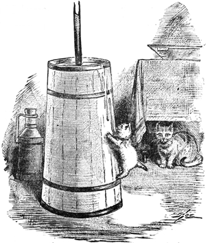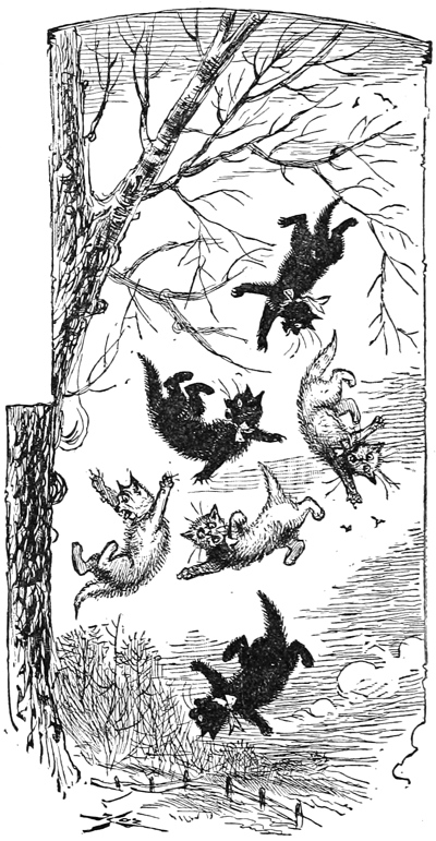 “Their mother was the other side of the wall and near enough to hear them mew. She knew that if they mewed so, something was the matter. She sprang to the top of the wall and looked over and when she saw what had been done she was very angry, and jumped down, and took the air-balls off of Faw, Sol, and Law’s tails and tied them to Chickerchecker, and Chickerchecker went over the wall and blew into a tree.