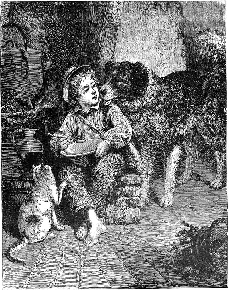 “She held out her hand. I dared not go. She went in and placed a saucer of milk on the kitchen hearth, called me and left the door open, and went to another room. I crept in to the hearth, and lapped, lapped, lapped, oh how I did lap! No tongue can tell the sweetness of that milk!