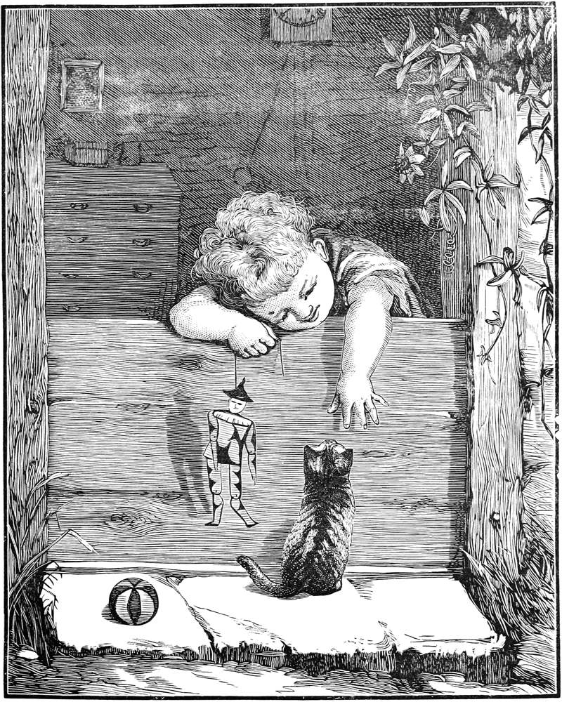“Now just as I was to jump from my jumping spot I saw this kind maiden coming down the steps. She had her pet kitten in her arms and was tending it with care. ‘Oh pet kitten! pet kitten!’ I mewed to it. ‘How little you know the unhappiness of a cat without a home!’ Mewing this, I hung my tail and was slinking out of sight when I heard these words.