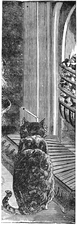 “One day—oh unhappy day! the next house cat’s mistress came to see my mistress, and they talked of cats. I lay outside under the open window and heard every word, and understood. Mistresses, as you very well know, dear Lady Yellow-paw—as all of you at this famous party very well know—mistresses have no idea how much their cats can understand.